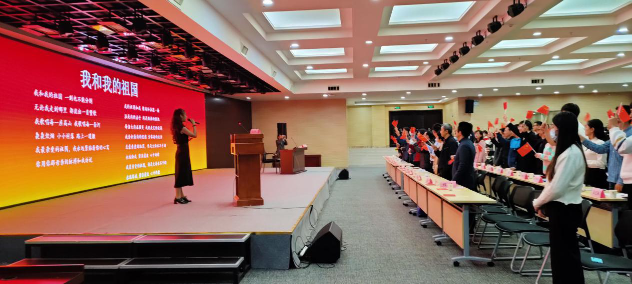 最后,全体师生起立、手持国旗合唱《我和我的祖国》,在师生们嘹亮的歌声中新生见面会圆满结束。
