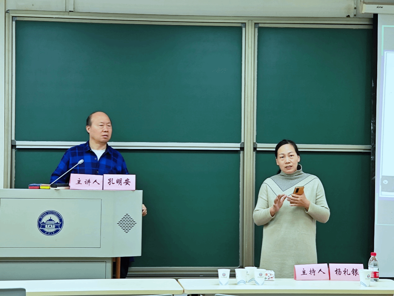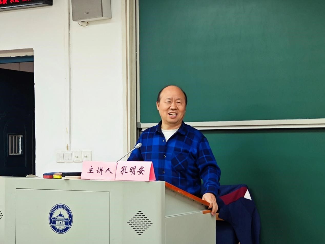 在互动环节中,孔教授还与在座师生们进行了亲切而热烈的交流。研究生陈茁、陈朝月、赵伟业先后对孔教授的讲授提出了疑问,孔教授一一进行了细致解答。
