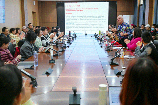 202会议室成功举行。英国安格利亚鲁斯金大学教授大卫·希尔(Dave Hill)教授应邀莅临成人直播