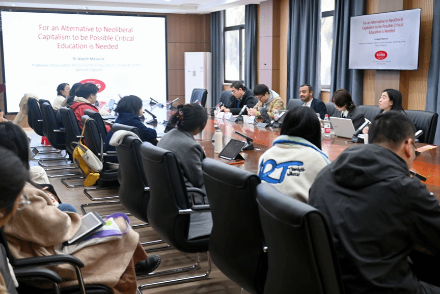 202成功举行,英国布里斯托尔西英格兰大学教育学教授阿尔佩西·马苏利亚(Alpesh Maisuria)做了“Marxism and Education(马克思主义与教育)”的专题讲座。讲座由成人直播