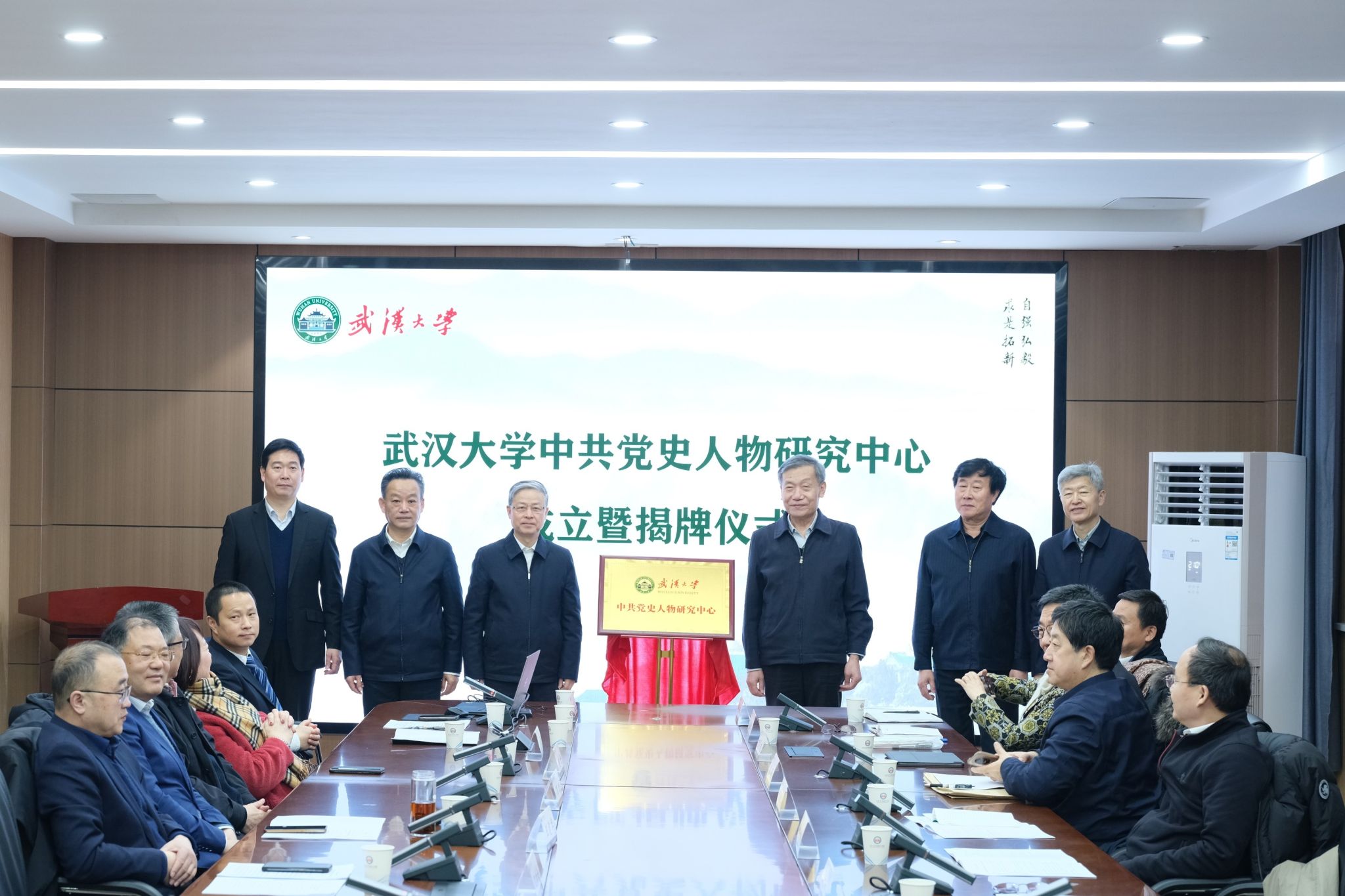 党委书记黄泰岩、常务副书记沈壮海等校领导以及中共湖北省委党史研究室主任何光耀等省市领导出席揭牌仪式。来自中国人民大学、南京大学、南开大学、华中科技大学等10余所兄弟院校及校内的30余位专家学者参会。