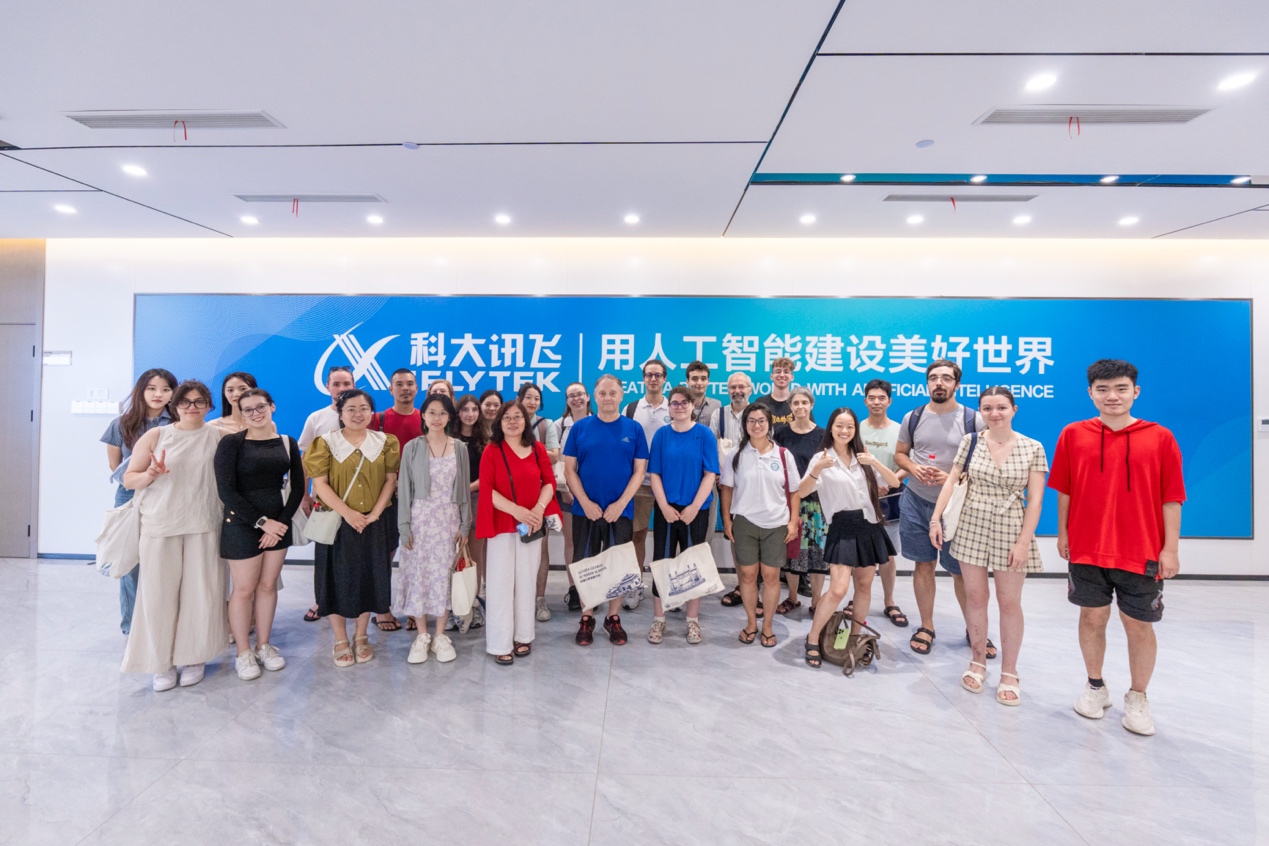 7月16日下午,代表团与马院师生一同来到科大讯飞华中公司,感受AI在各领取的发展应用。在讲解员的带领下,一行人跟着中法实时翻译器的准确传达,深入体验了AI+教育、AI+医疗、AI+城市、AI+工业等板块。智能的人机交互、实时准确的翻译内容、科技感慢慢的产品应用引得师生们赞叹连连。同学们深刻感受到,在科技的飞速发展中国际交流正变得更加便捷,国与国之间的距离正变得越来越近。中国领先的科技水平,正在引领世界潮流。