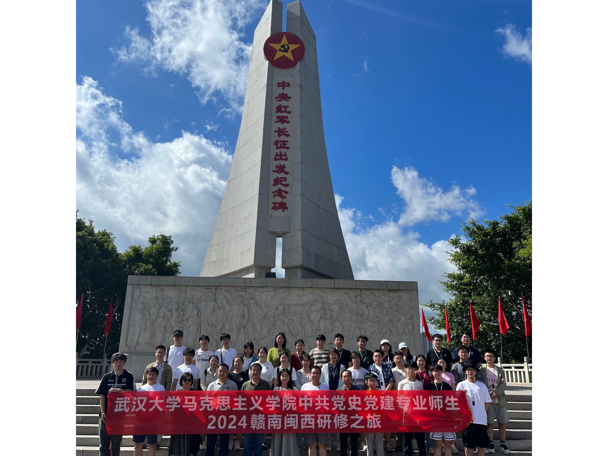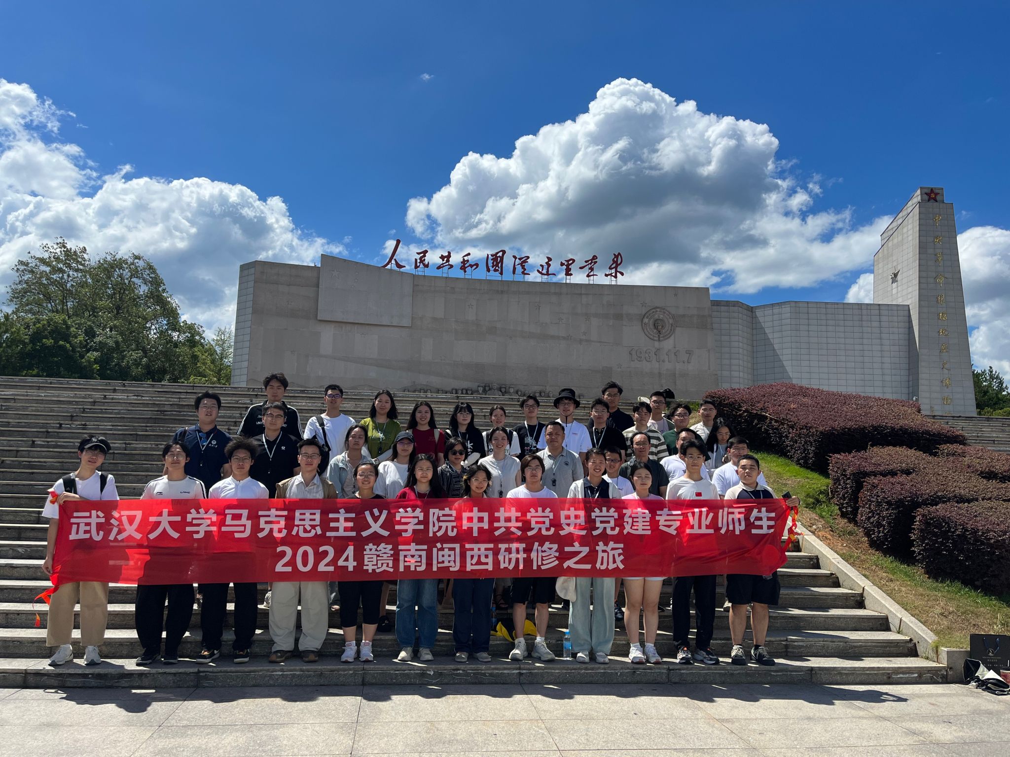 中共党史党建系组织30余名师生代表赴赣南闽西开展以“追忆峥嵘岁月,赓续红色血脉”为主题的专业研修活动。本次研修活动历时6天,参与学生涵盖中共党史党建系本、硕、博学生群体,足迹遍及原中央革命根据地于都、瑞金、长汀、古田等地。