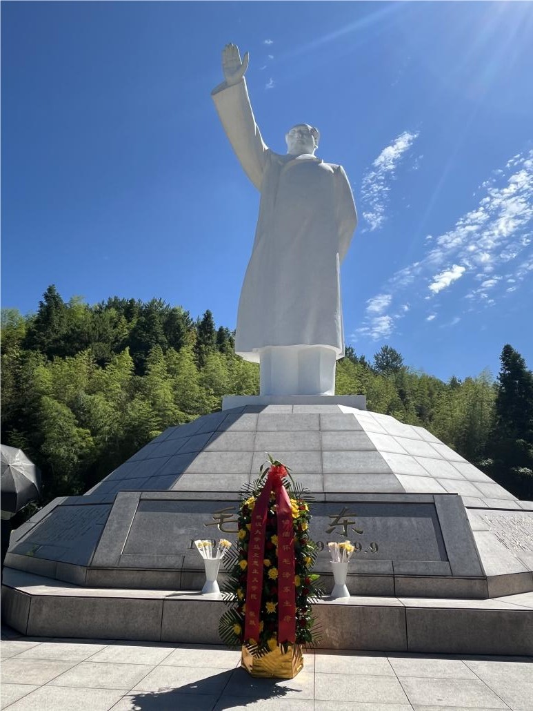 在毛泽东纪念园,师生一行向毛泽东主席塑像敬献花圈,深切缅怀以毛泽东为代表的老一辈无产阶级革命家的丰功伟绩。