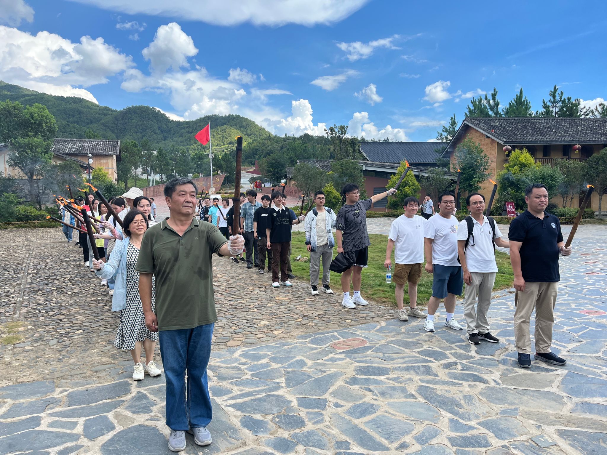 7月20日下午,研修团队前往红军长征第一村——中复村参加现场教学。在中复村,师生们瞻仰了“红军桥”“红军老街”等革命旧址。在观寿公祠,即红九军团长征出发地,师生一行参与了“点燃火把”的活动,感受到了革命薪火代代相传。
