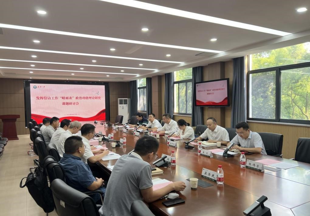 揭牌仪式后,中心召开了发挥信访工作‘“晴雨表”’政治功能理论研究课题研讨会。省政协办公厅研究室理论信息处副处长王坤坤、省公安厅信访处四级调研员孙绪强、成人直播 社会成人直播副院长、教授、博士生导师桂晓伟、成人直播 优秀青年学者、政治与公共管理成人直播教授、博士生导师吕普生、成人直播 法成人直播教授、博士生导师李栋围绕如何用好用足信访工作这张晴雨表与课题组展开了深入的讨论。