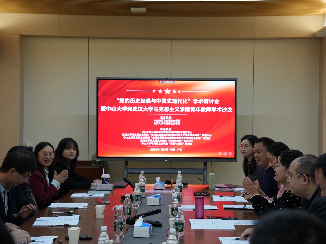 青年教师学术沙龙。会议由中大马院“毛泽东思想和中国特色社会主义理论体系概论”教研室主任李文珍副教授主持。中大马院院长沈成飞教授在致辞中对武大马院教师一行来访表示欢迎,指出中大马院和武大马院有深厚的历史渊源与合作基础,本次学术交流活动的开展既能增进双方交流合作,也是提升青年教师学术水平和教学能力的现实需要。武大马院党委副书记孙燕老师在致辞中对中大马院的精心组织表示感谢,指出武大马院重视与中大马院的交流合作,期待通过本次活动促进青年教师的成长,共同打造好青年教师学术交流平台。