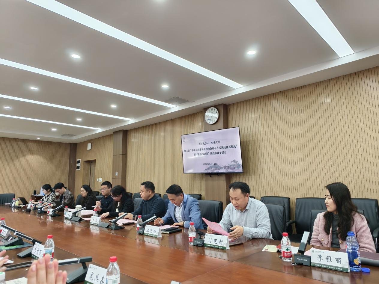 3月14日下午,成人直播 和中山大学成人直播 联合举办“毛泽东思想和中国特色社会主义理论体系概论”暨“形势与政策”课程集体备课会。本次备课会以“推动新时代思政课教学高质量发展的理与路:以教学改革和教师成长为中心” 为主题,中山大学成人直播 副院长童建军、成人直播 副院长李华及两校教师代表共同参会。