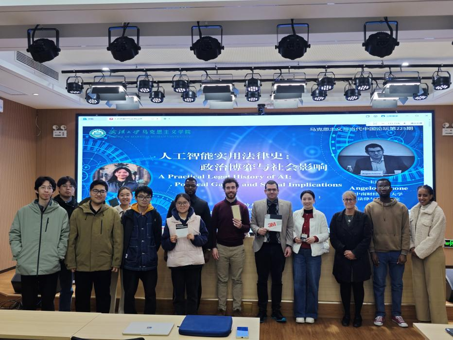 “马克思主义与当代中国论坛”第二百二十五讲“人工智能实用法律史:政治博弈与社会影响”在成人直播报告厅成功举办。中南财经政法大学法律与经济成人直播讲师Angelo Falsone应邀作专题讲座,讲座由成人直播