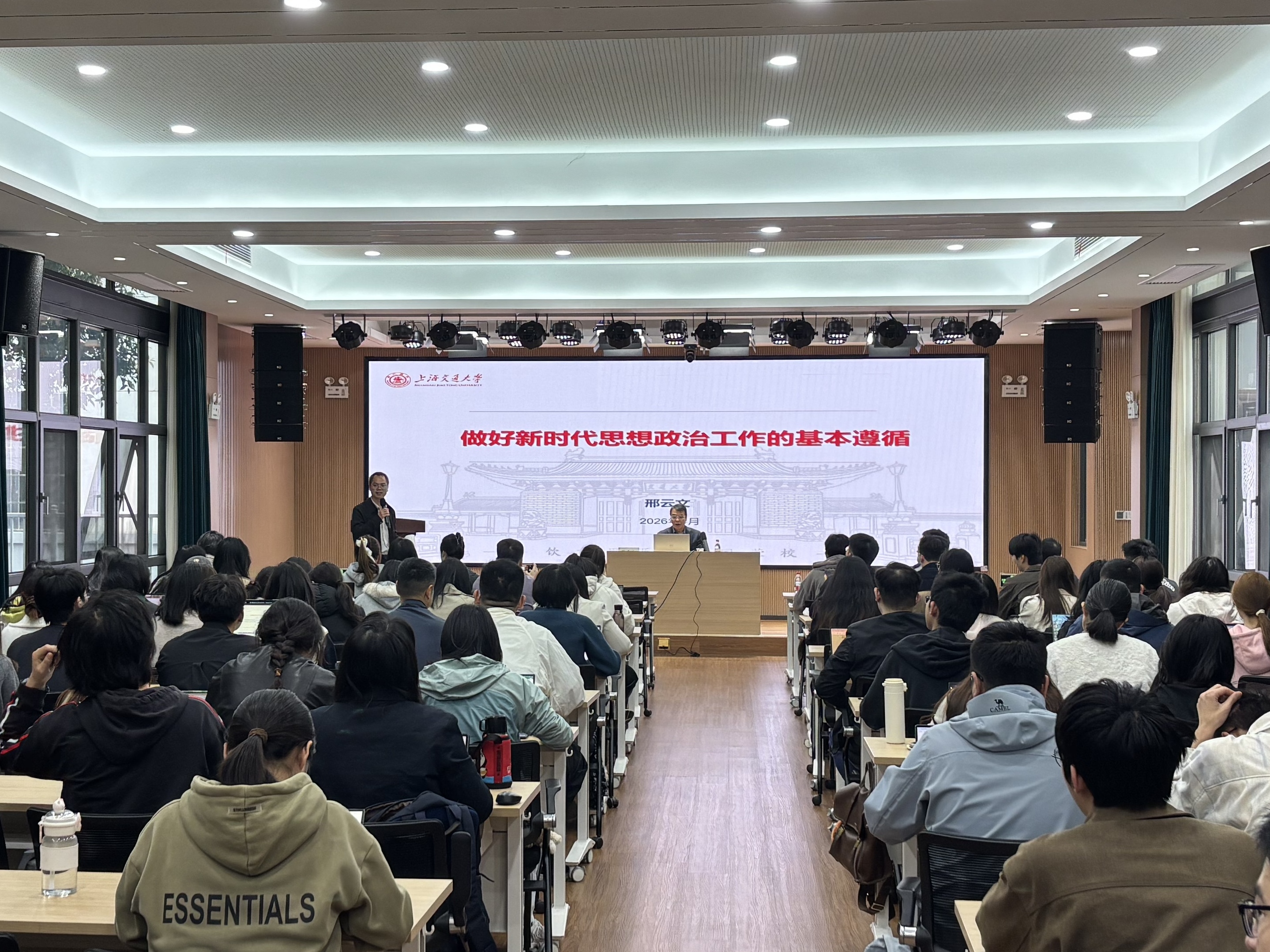 院长、上海交通大学特聘教授邢云文应邀作“做好新时代思想政治工作的基本遵循”专题讲座。成人直播党委书记张全友、院长刘水静出席讲座,全校百余名师生参加此次讲座,讲座由刘水静主持。