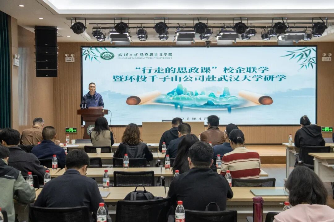 马克思主义中国化系教师党支部、本科生第二党支部与武汉环投千子山公司党支部、交投康养公司党支部共同举办了“行走的思政课”暨校企支部联学联建活动。四个党支部60余名师生、职工代表参加了活动。