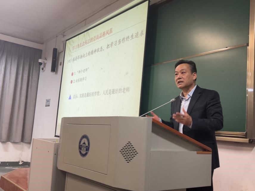 讲座最后,何光耀教授向在座师生总结了李先念同志的品格风范,分别是坚定的理想信念,一往无前的奋斗精神;宽广的革命胸怀,谦虚谨慎的处世风格;愈挫愈奋的英雄气概,求真务实的工作作风;保持昂扬向上的精神状态,把学习当作终生追求。他指出,同学们应该主动学习革命先辈的品格风范,在学习生活中不断把自身锻造得更加坚强,在新征程上奋勇前行。