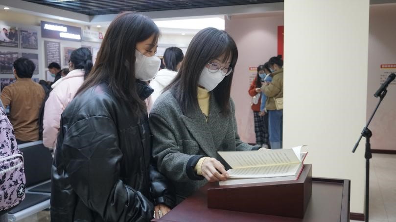 展览主体内容参观结束后,由孙燕副书记作为领誓人,师生共同进行了“宪法宣誓”。整齐洪亮、铿锵有力的誓词宣读,表达了同学们对新时代青年捍卫宪法和法律权威这一历史使命的决心。