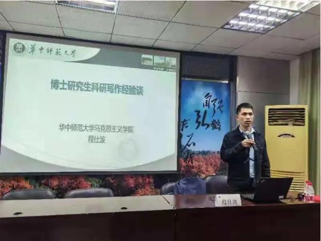 2016级博士院友、首届马院榜样、华中师范大学讲师、硕士生导师程仕波回到母院为在读博士生们分享科研写作经验。分享会由成人直播博士生辅导员高裕主持,院党委副书记孙燕出席,全体博士生参加了此次分享会。