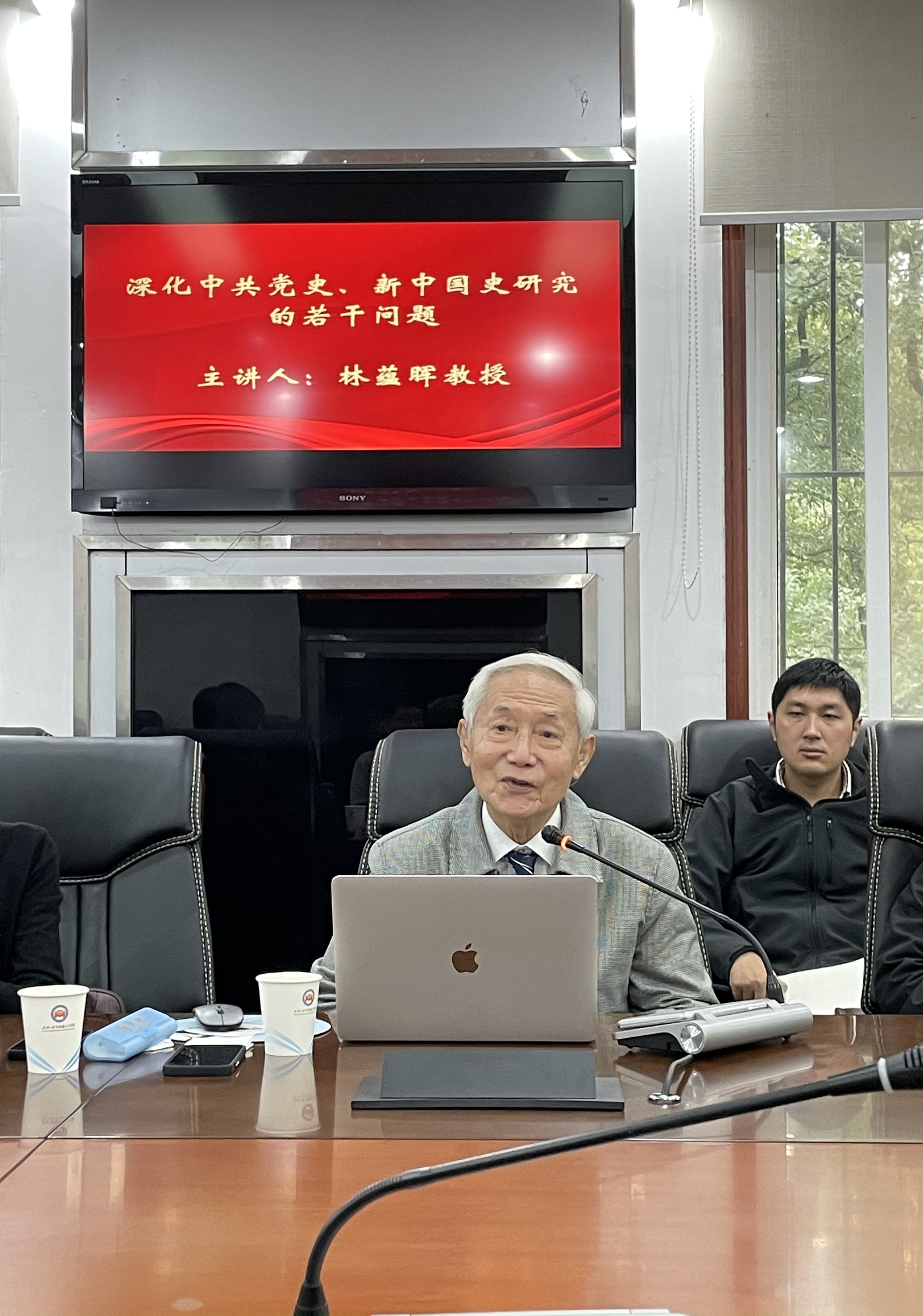 10月16日上午,著名党史国史专家、原国防大学教授林蕴晖应邀在成人直播M218会议室,作了题为“深化中共党史、新中国史研究的若干问题”的学术讲座。讲座由成人直播