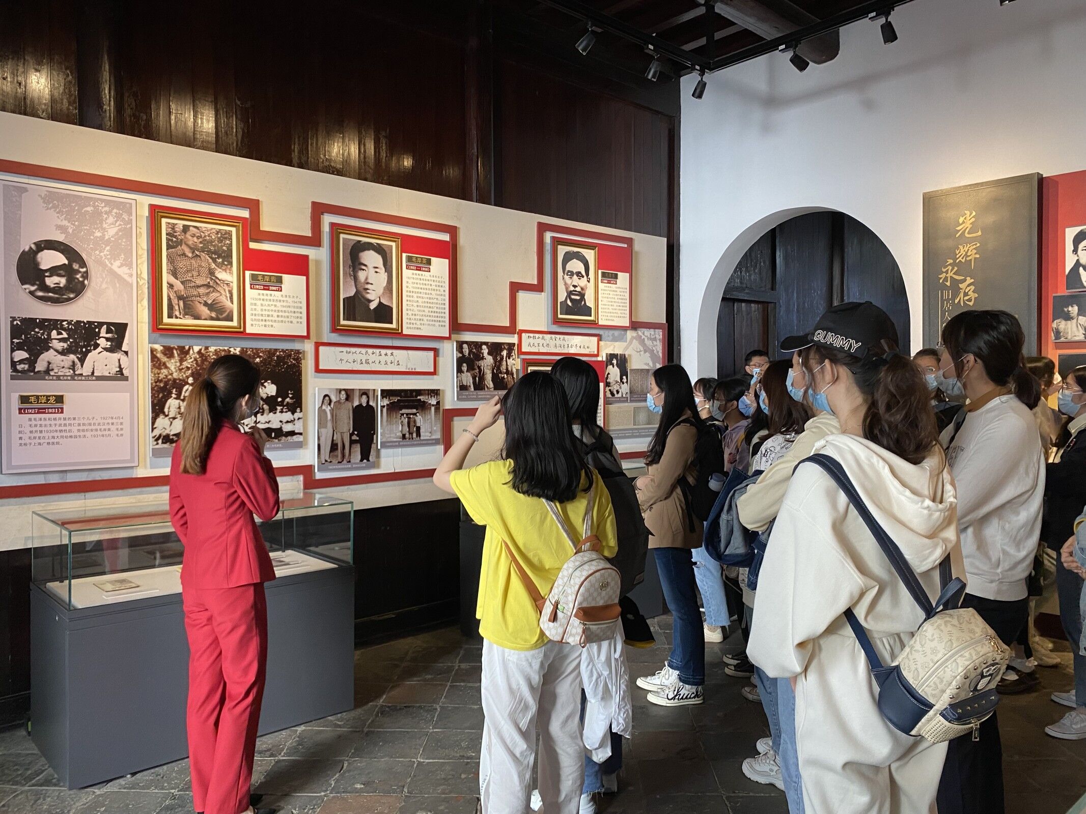 为求新路汇江城,力挽狂澜开新局。师生参观学习的首站来到中共五大会议旧址。“红巷爷爷”为同学们带来了生动的讲解。这一在大革命生死存亡的危急关头召开的非常会议,无疑是中共党史历程中浓墨重彩的一笔。根据讲解员细致认真的陈述,同学们仔细阅读着图文并茂的史料,在中共五大会议旧址中切实感受当年会议的情景,书本上沉默的文字变为了生动的影像资料,历史与现实交织,同学们脑海中不禁勾勒出那些为了中国未来而奋斗的青年形象。