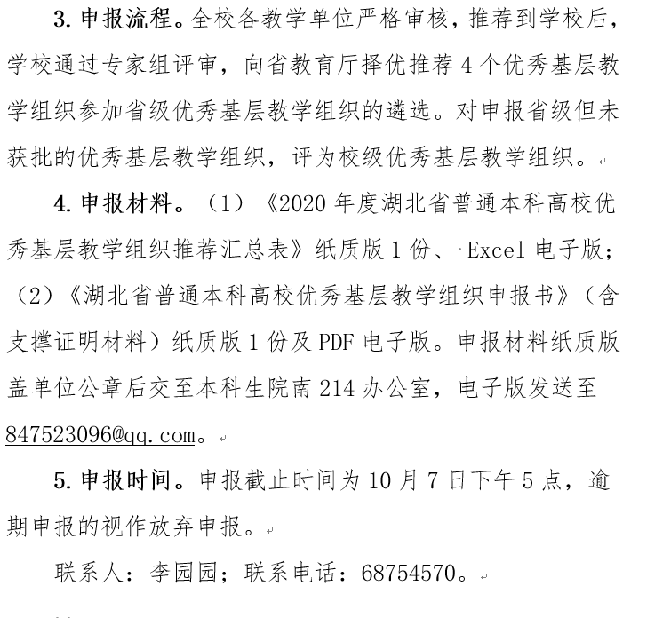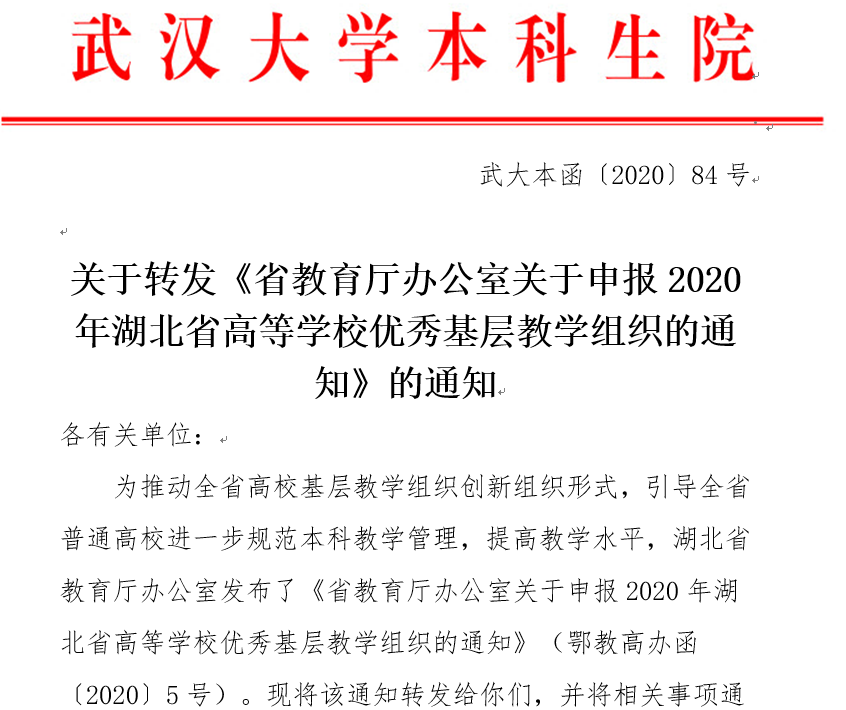 附件【附件1:鄂教高办函〔2020〕5号 省教育厅办公室关于申报2020年湖北省高等学校优秀基层教学组织的通知.pdf】已下载次