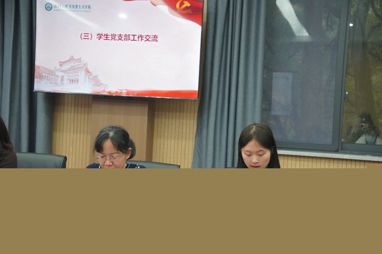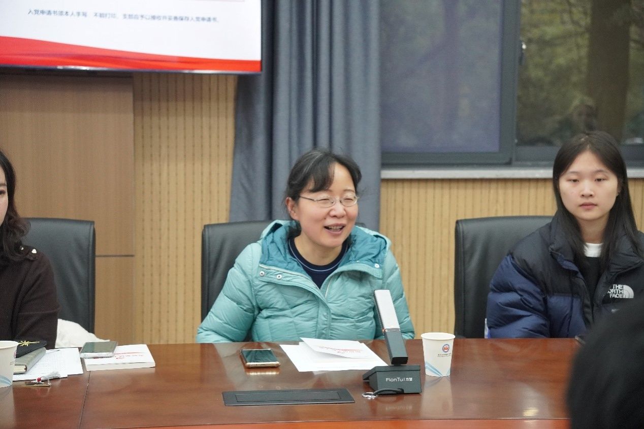 随后,学生党总支副书记黄咏薇、严宇、田意雨、路蕊萌作支部工作提醒。黄咏薇同志结合过往案例对党支部工作中可能出现的问题进行了强调,提醒各支部书记及时记录预备党员培训情况。严宇同志指出了严明纪律的重要性,希望各支部书记认真对待工作,仔细阅读党员发展手册,积极联系对接委员,把握好各项工作的时间节点。田意雨同志就定期填写三会一课表格与会议记录本、扫描新发展党员入党志愿书等工作予以补充。路蕊萌同志提出进一步规范和改进党费收缴工作,并欢迎各支部积极投稿新闻,以更好展示支部风采并推广先进工作经验。